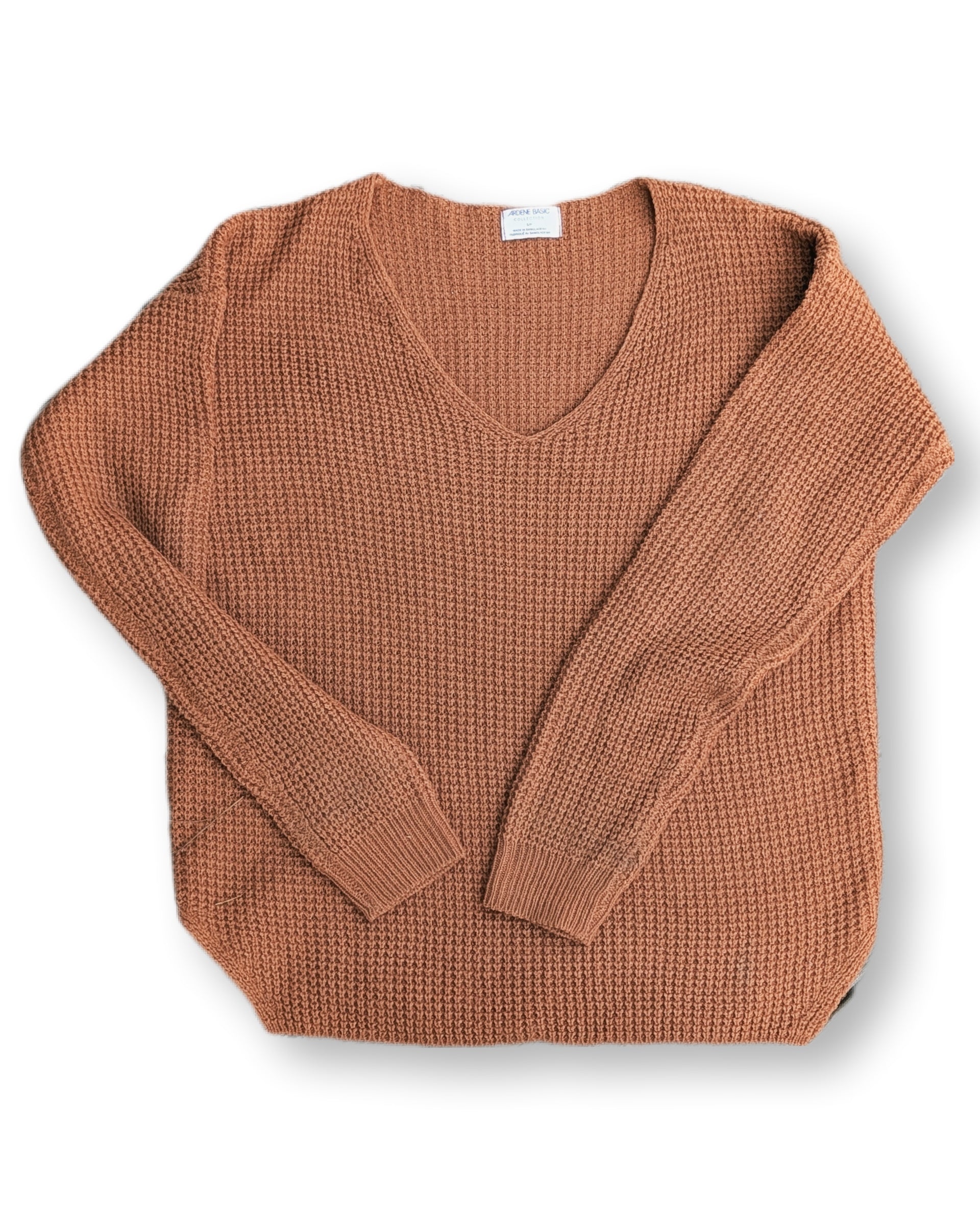 Chandail en tricot côtelé avec col en V couleur terre | Ardène | SMALL