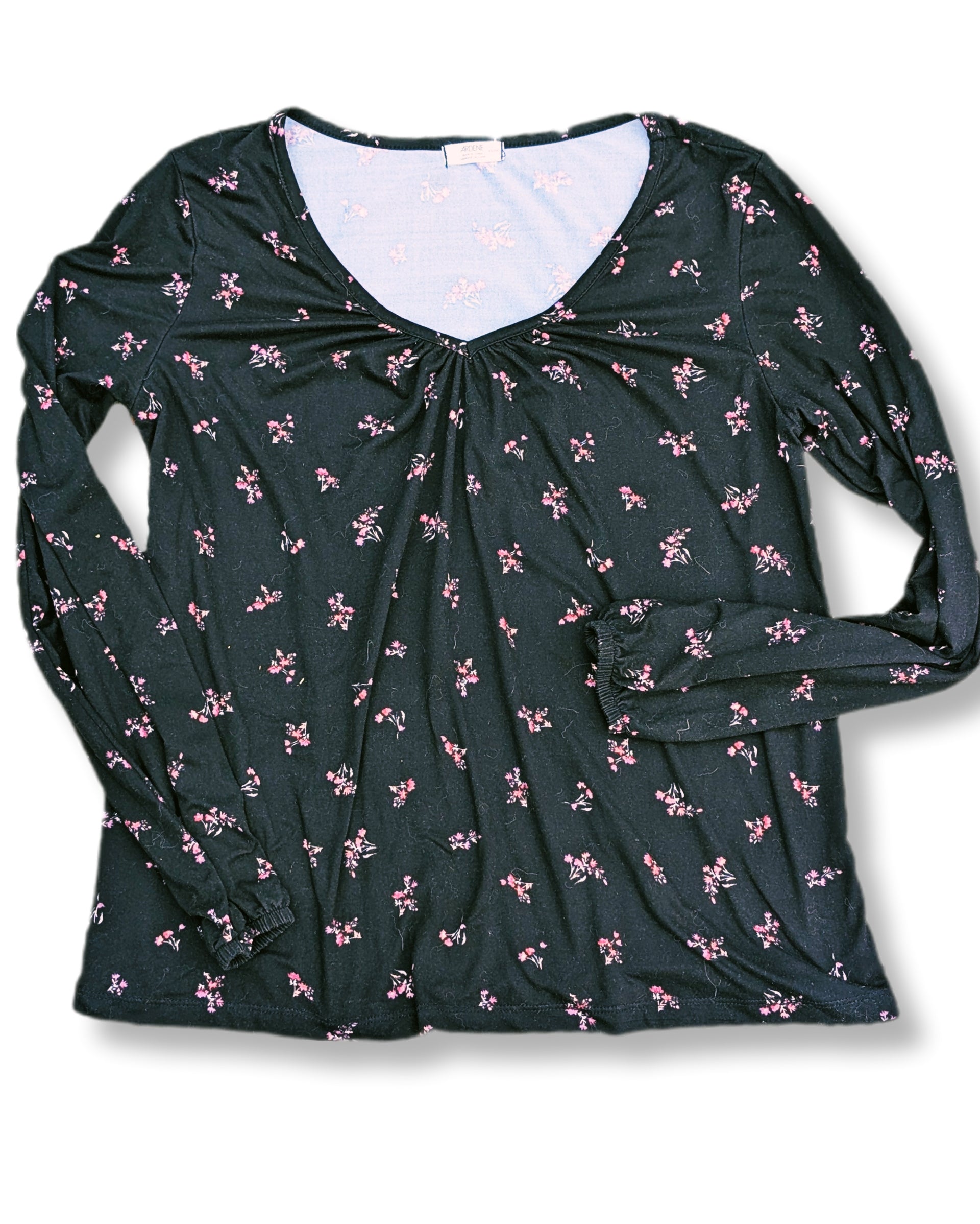 Chandail fleuri manches longues & col en V│Ardène
