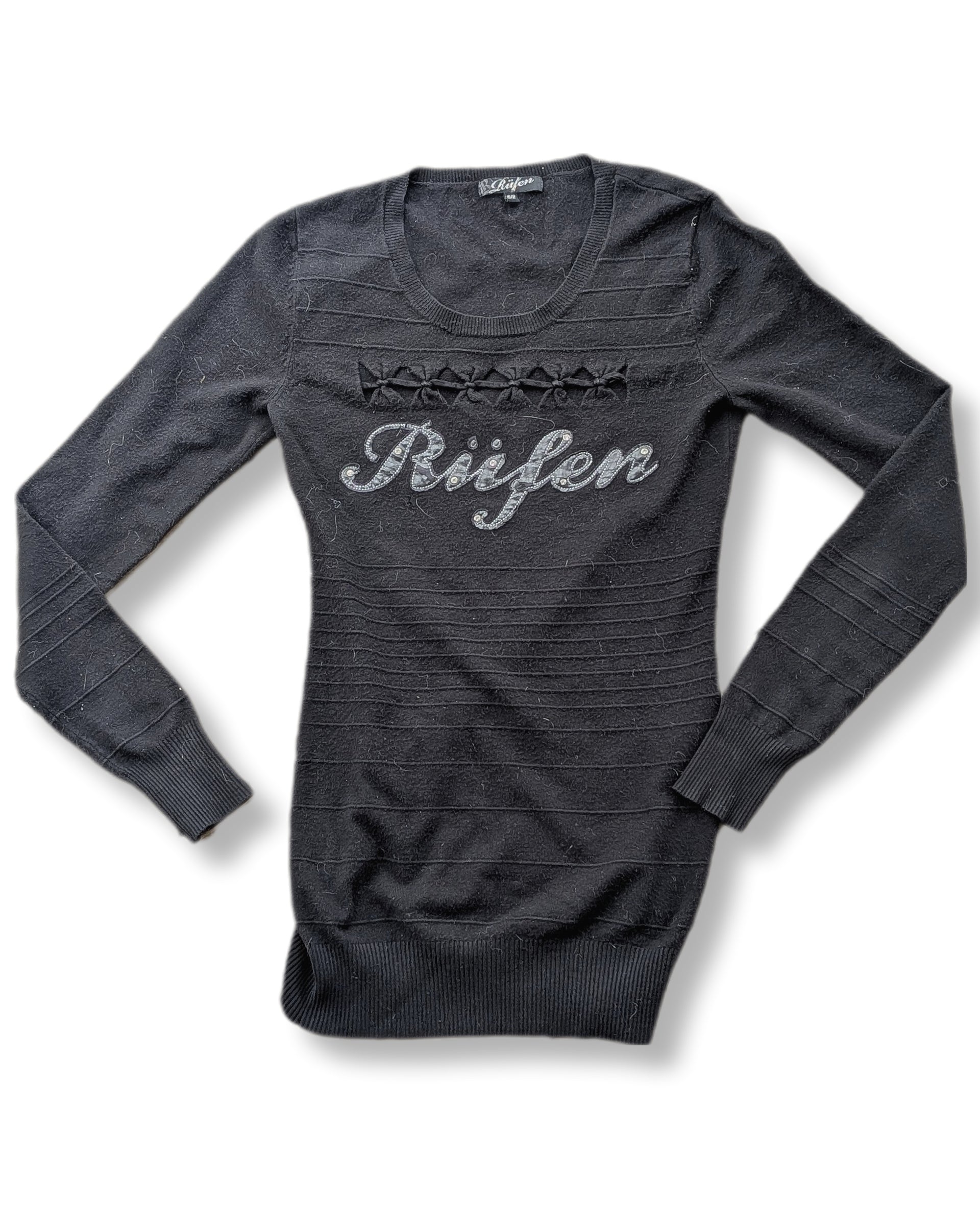 Chandail noir ajusté avec détails troués à la poitrine | RÜFEN | SMALL