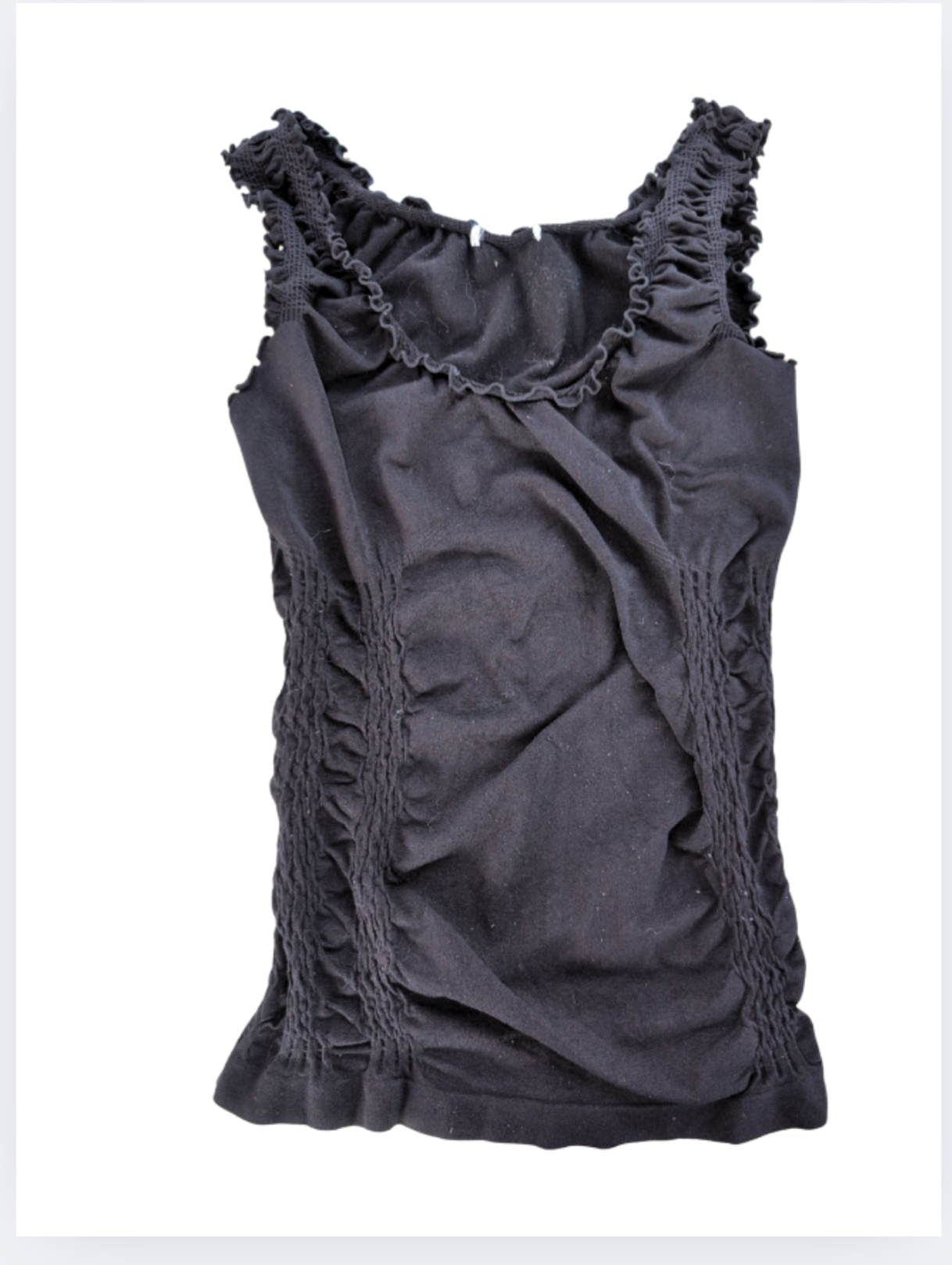Débardeur noir avec col & manches à volants & détails gaufrés | SMALL