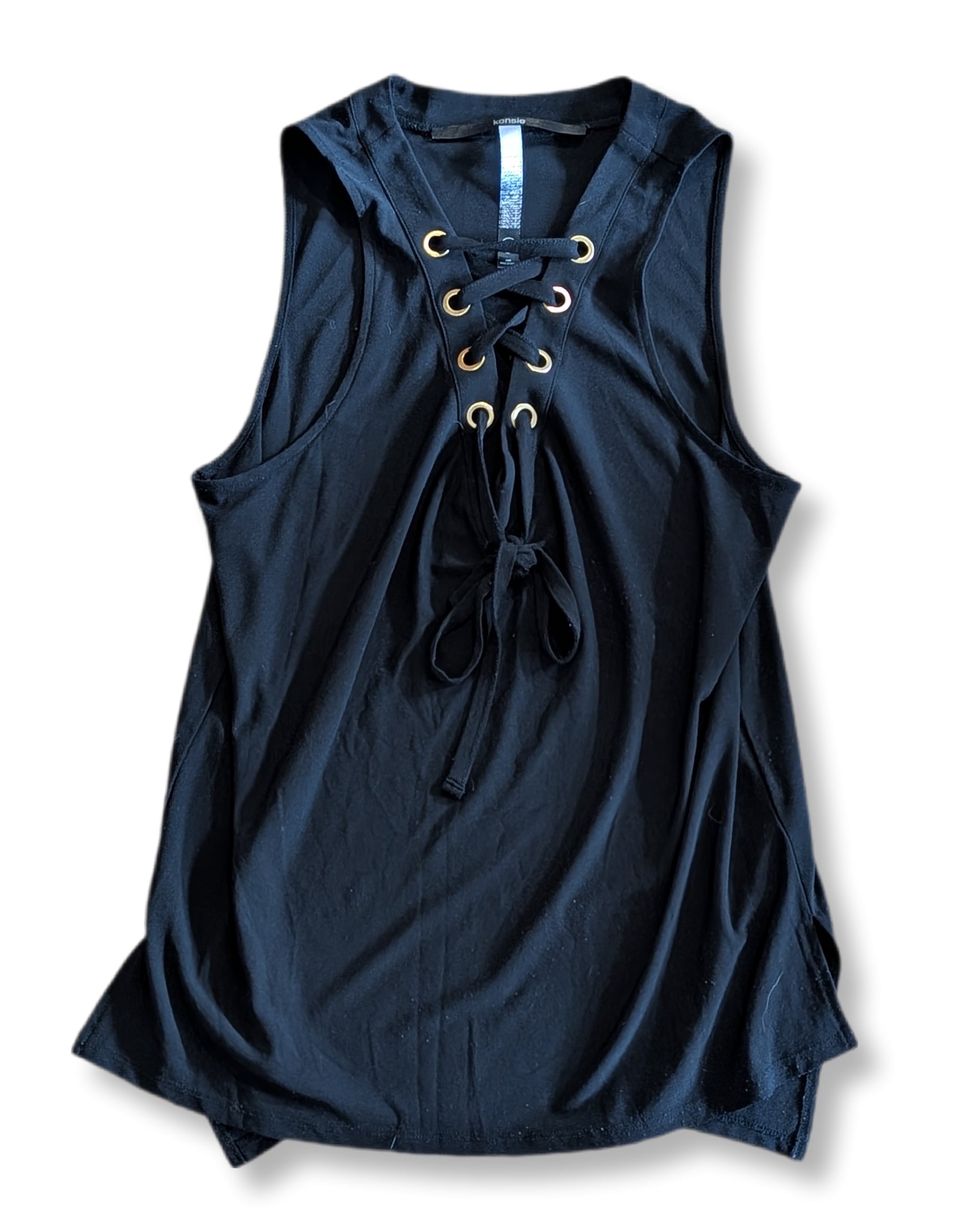 Débardeur noir sans manches avec lacets et œillets à la poitrine | kensie | SMALL