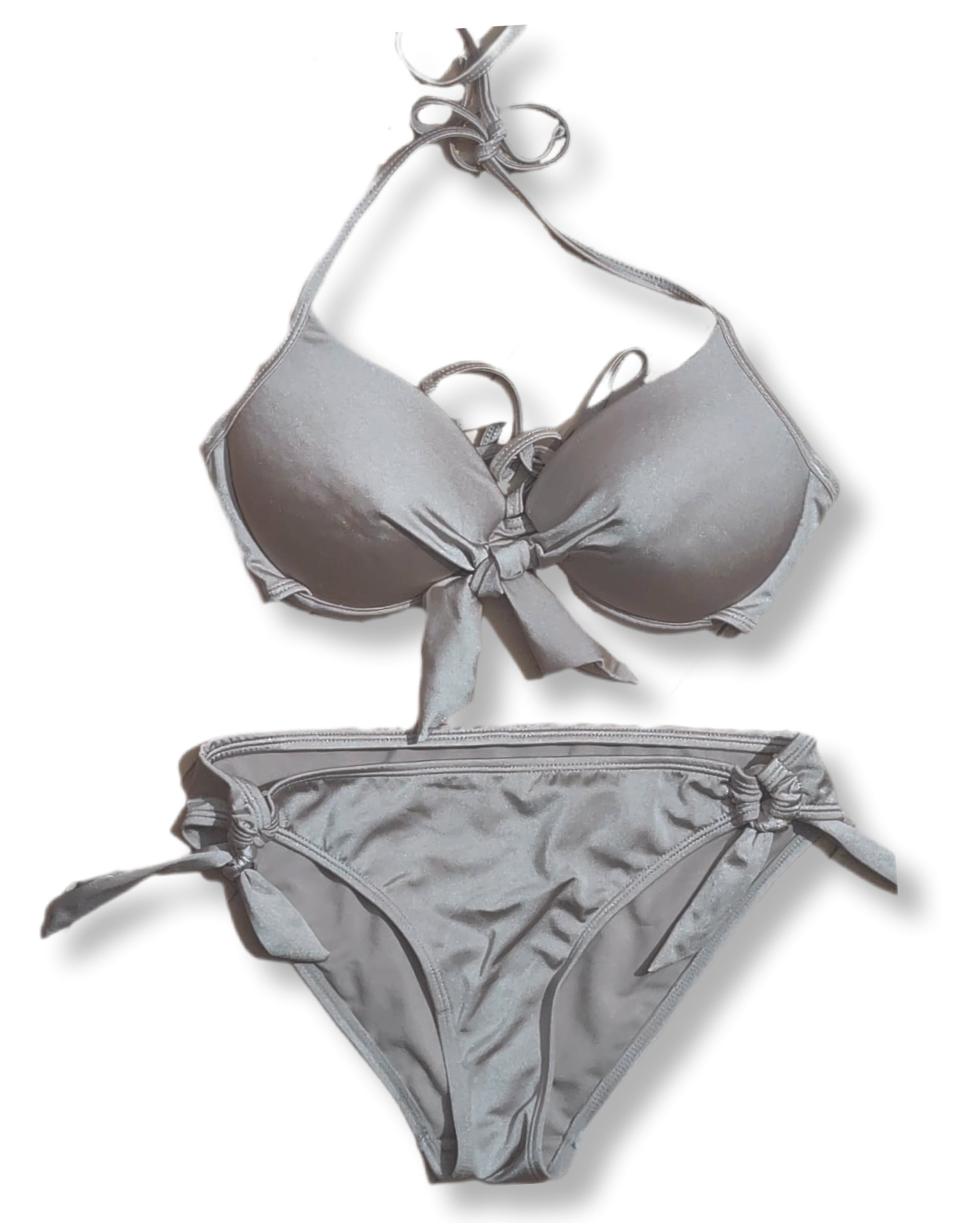 Ensemble bikini "push-up" licou argenté avec un nœud central - S
