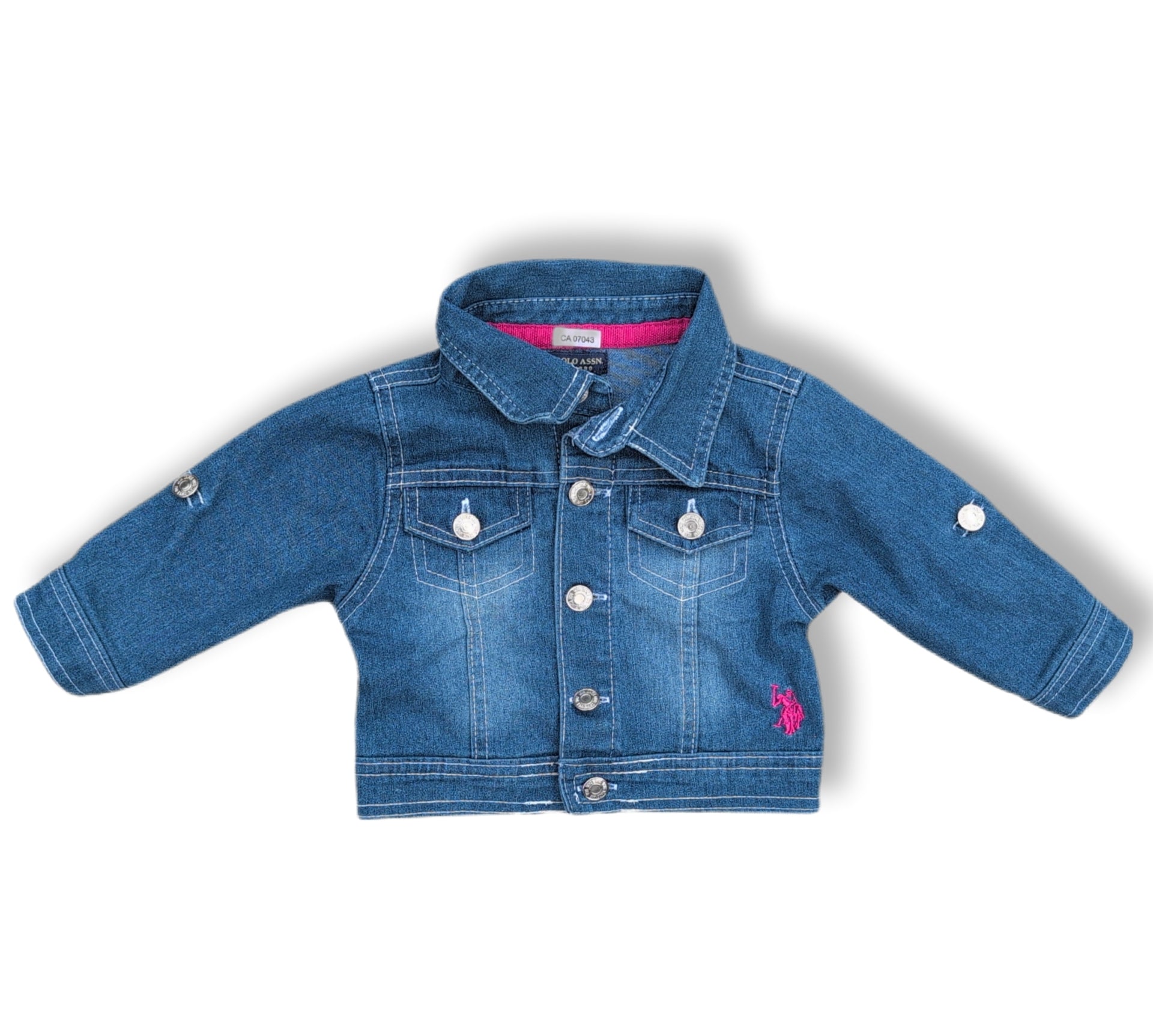 Manteau de jeans foncé avec broderie rose éclatante & contrastante | u.s. polo assn | 24 mois
