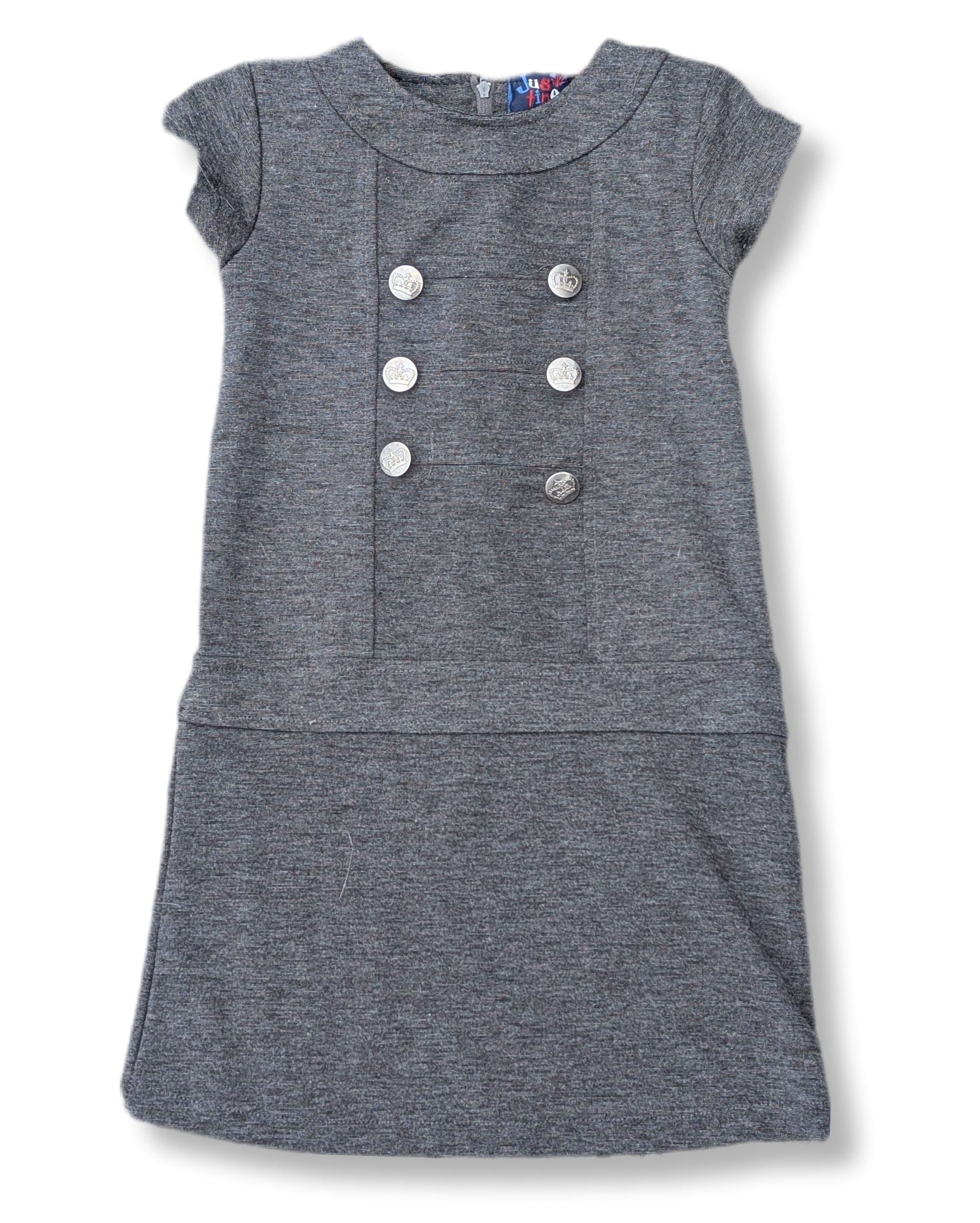 Robe grise style militaire avec faux boutons | 7 ans