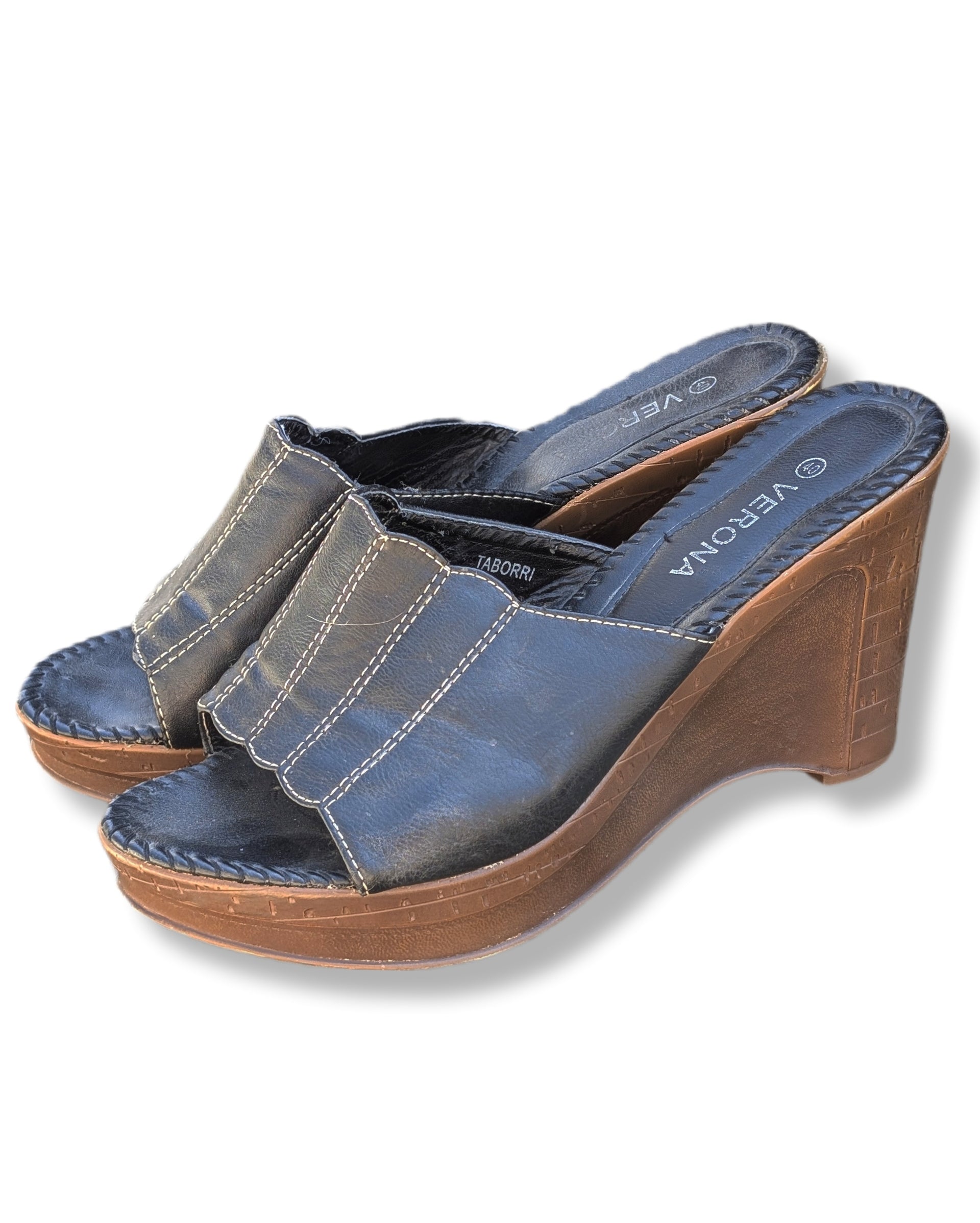 Sandales compensées noires à coutures apparentes | VERONA | 10