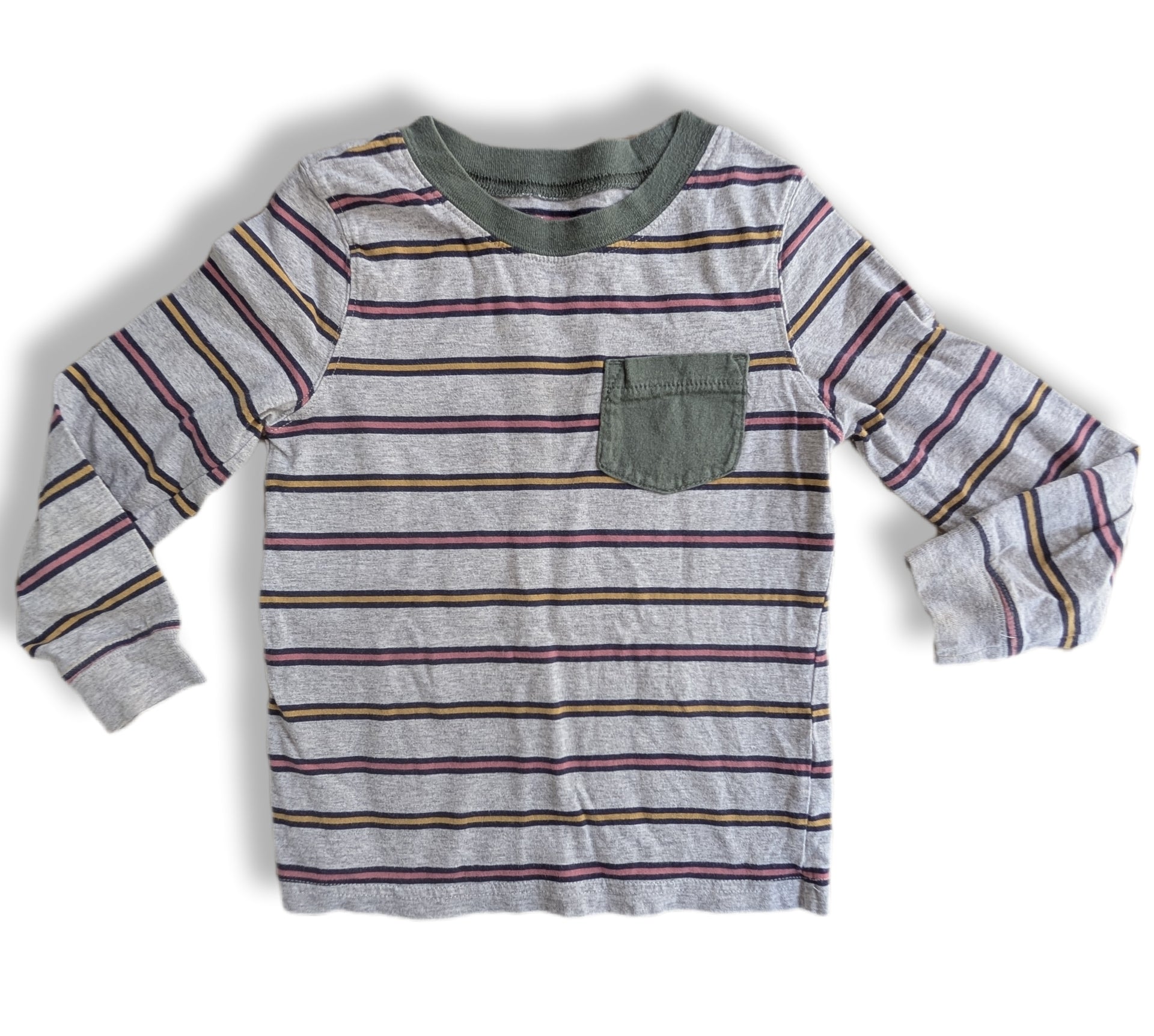 T-shirt à manches longues gris chiné avec motifs rayures colorées et poche | CARTER'S | 5 ans