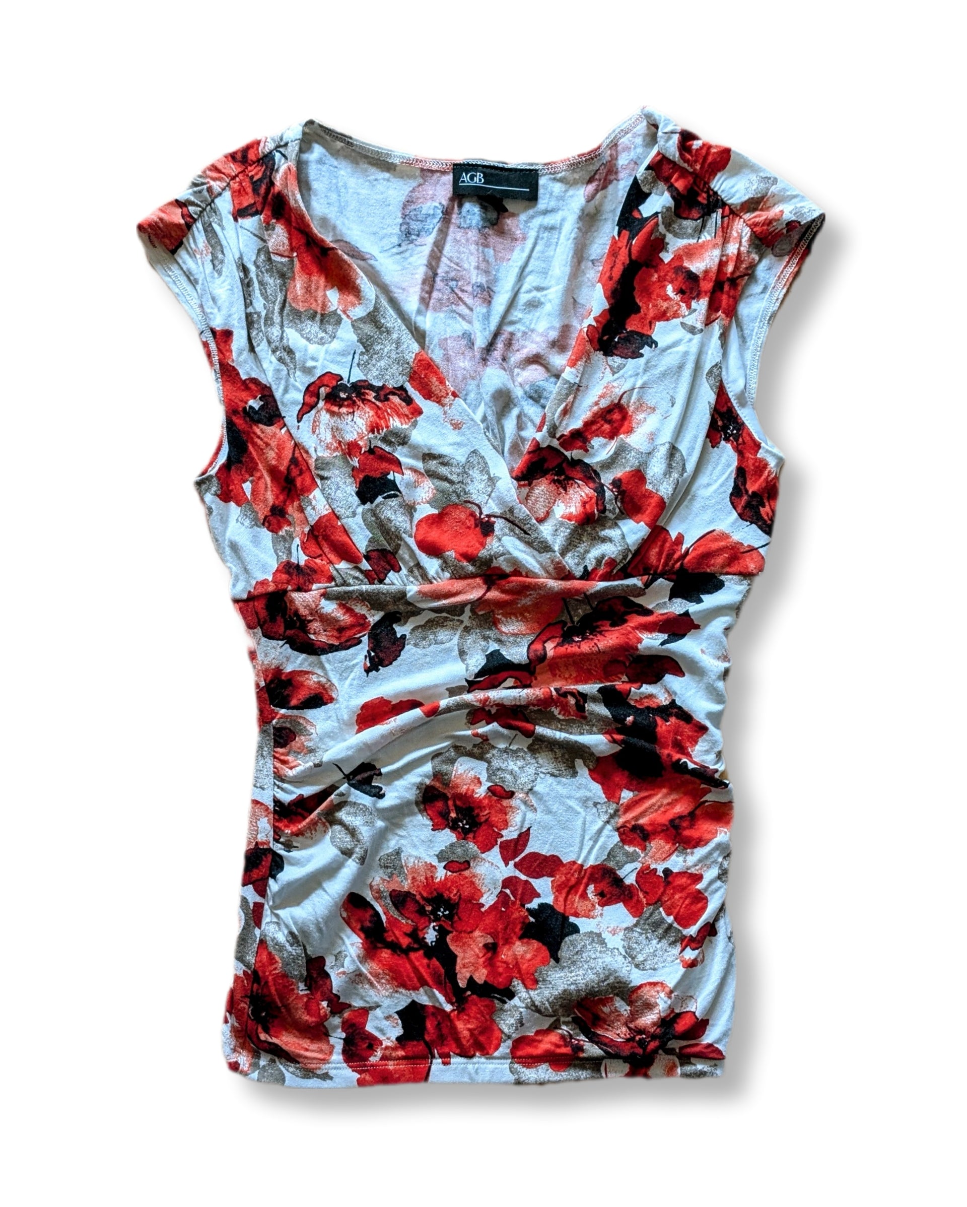 T-shirt sans manches avec col cache-cœur & motifs floraux | MÉDIUM